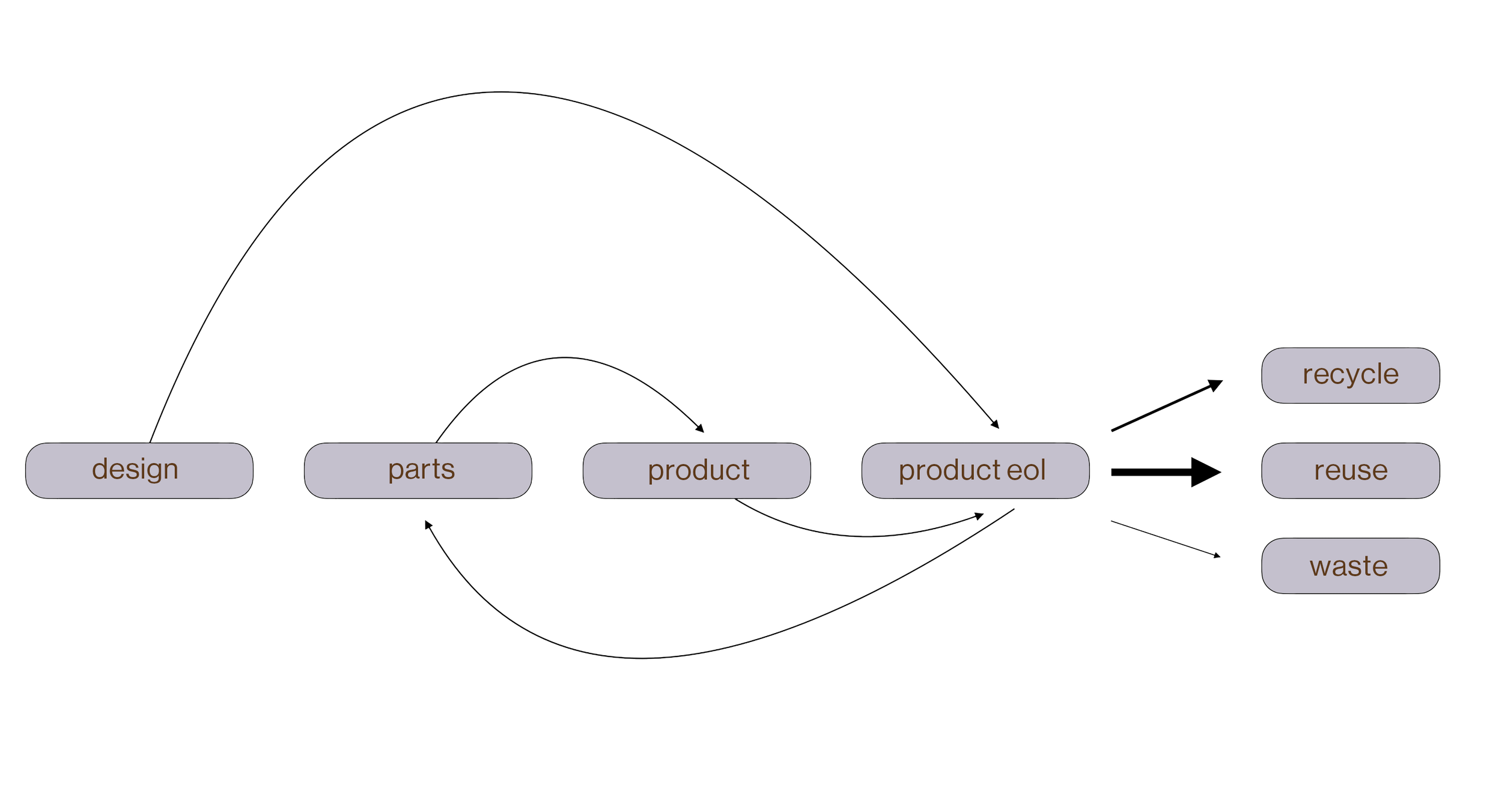think about your product as parts of the whole and consider what happens to those parts. a successful d/D product looks to reuse above all else, recycles when necessary, and wastes as little as possible.